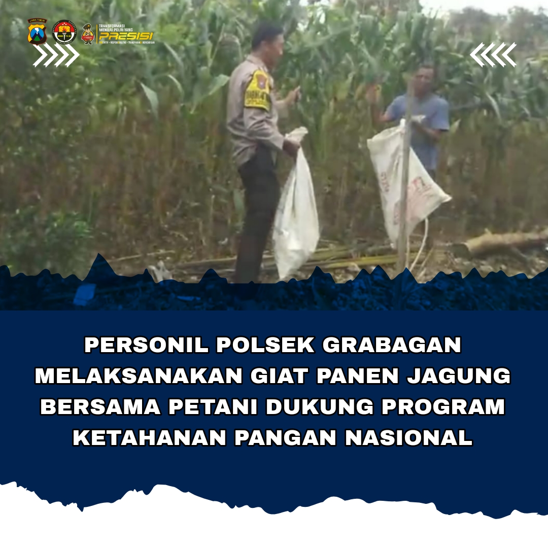 Polri dalam hal ini Polda Jatim khususnya Polres Grabagan mendukung program ketahanan pangan guna mewujudkan swasembada pangan Indonesia. Salah satu upaya nyata diwujudkan melalui kehadiran bhabinkamtibmas Desa Grabagan Polsek Grabagan Polres Tuban Polda Jatim melaksanakan kunjungan ke perkarangan milik warga Desa Grabagan kecamatan Grabagan Kabupaten Tuban. Kunjungan tersebut dilakukan Bhabinkamtibmas guna mendukung program ketahanan pangan nasional yang dicanangkan pemerintah.