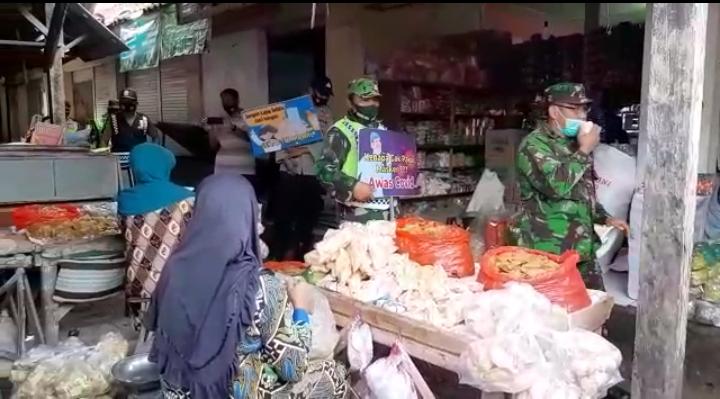 Kegiatan sosialisasi dilanjutkan dengan blusukan ke dalam pasar untuk mendisiplinkan warga agar mentaati protokol kesehatan dengan cara memberikan teguran secara humanis kepada pengunjung pasar yang diketahui tidak menggunakan masker.