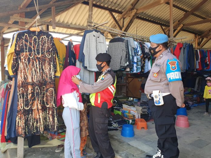 Personil Polsek Montong Polres Tuban mengunjungi warga desa binaannya sekaligus dialogis dan menghimbau warga agar selalu mematuhi protokol kesehatan guna memutus rantai penyebaran Covid-19.