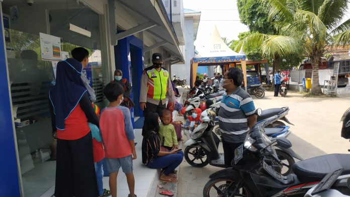 Pada kesempatan siang itu Polsek Bancar  memberikan himbauan protokol kesehatan serta berikan masker kepada warga yang berada di depan Bank BRI untuk selalu menjalankan Protokol Kesehatan 5M guna mengantisipasi Penyebaran Covid-19.