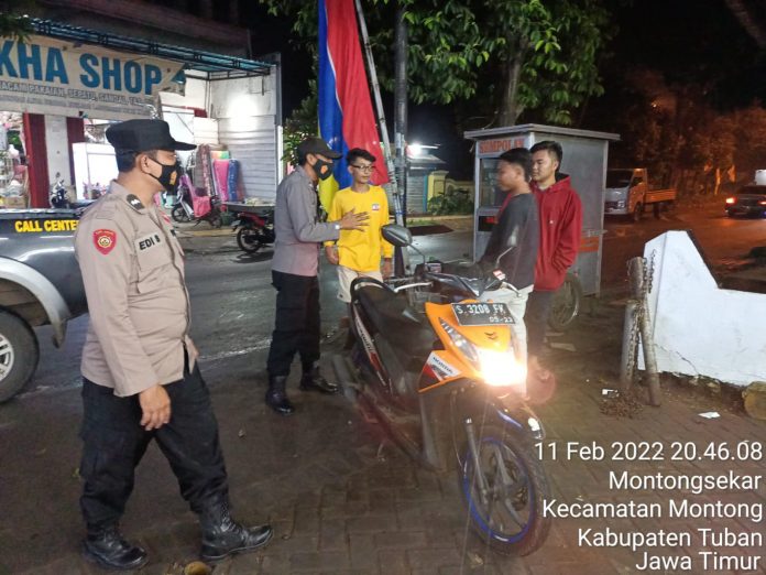 Guna mengantisipasi terjadinya tindak kejahatan maupun gangguan keamanan sekaligus upaca cegah penyebaran Covid 19 dan Umicron Kepolisian Sektor Montong Polres Tuban terus melakukan patroli pada beberapa lokasi, jumat, 11/2/2022.