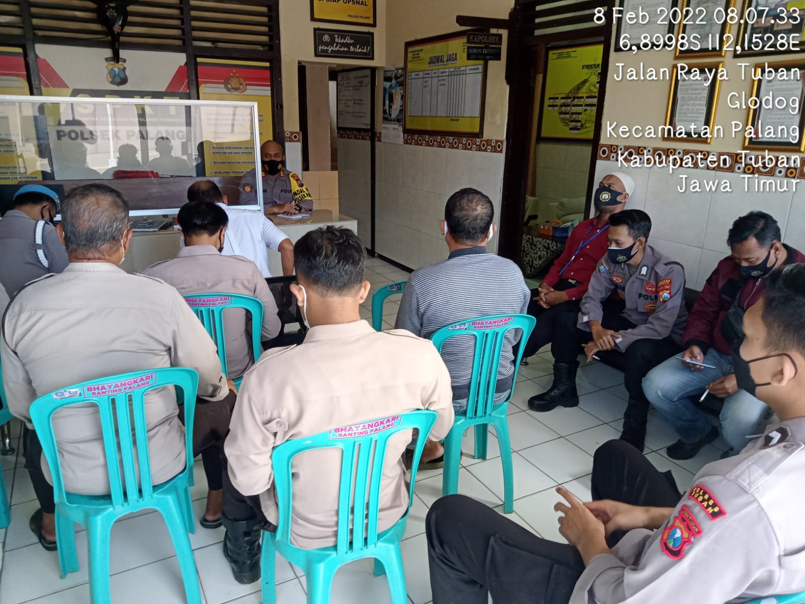 Polres Tuban,  AKP SIMON TRIYONO Kapolsek Palang Polres Tuban secara rutin setiap hari mengapelkan pagi dan memberikan APP kepada seluruh Kasi, Kanit, dan anggota Polsek Palang Polres Tuban, yang bertujuan menjaga kedisiplinan para anggota dan mengingatkan tugas masing masing fungsi agar berkerja secara profosional  dan profesional untuk memberikan pelayanan kepada masyarakat secara maksimal.