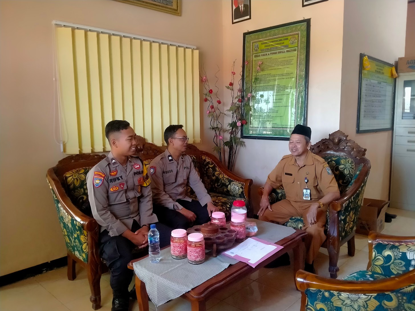 Senori – Kapolsek Senori Polres Tuban Iptu Sudjarwo, S.H., melalui Ps Kanit Binmas Aiptu Widodo bersama anggota Bhabinkamtimas Bripda Rifky Syahroni melaksanakan silaturahmi ke SMAN 1 Senori. Kegiatan tersebut bertujuan melaksanakan koordinasi dengan pihak sekolah terkait kerjasama antara Polsek Senori dengan instansi terkait khususnya di bidang pendidikan, Jumat (1/8/2025).