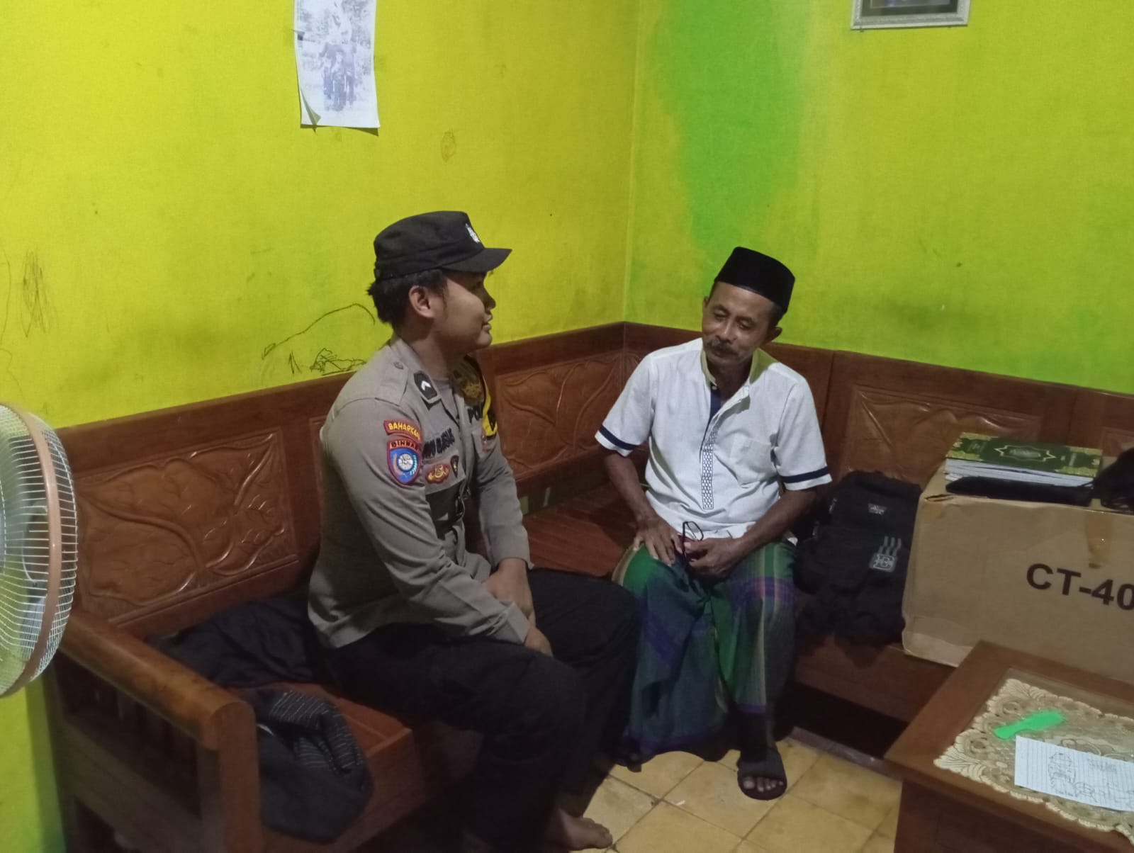 Parengan – Jalin silaturahmi dengan tokoh agama Bripda M. Rio Bagus Setyawan Bhabinkamtibmas Desa Pacing, sambang dan dialog dengan tokoh agama di RW.02 Desa Pacing Kecamatan Parengan Kabupaten Tuban, untuk menjalin silaturahmi dan kebersamaan dalam meningkatkan sinergitas sambil menitipkan pesan-pesan dan himbauan Kamtibmas. Rabu (12/03/2025).