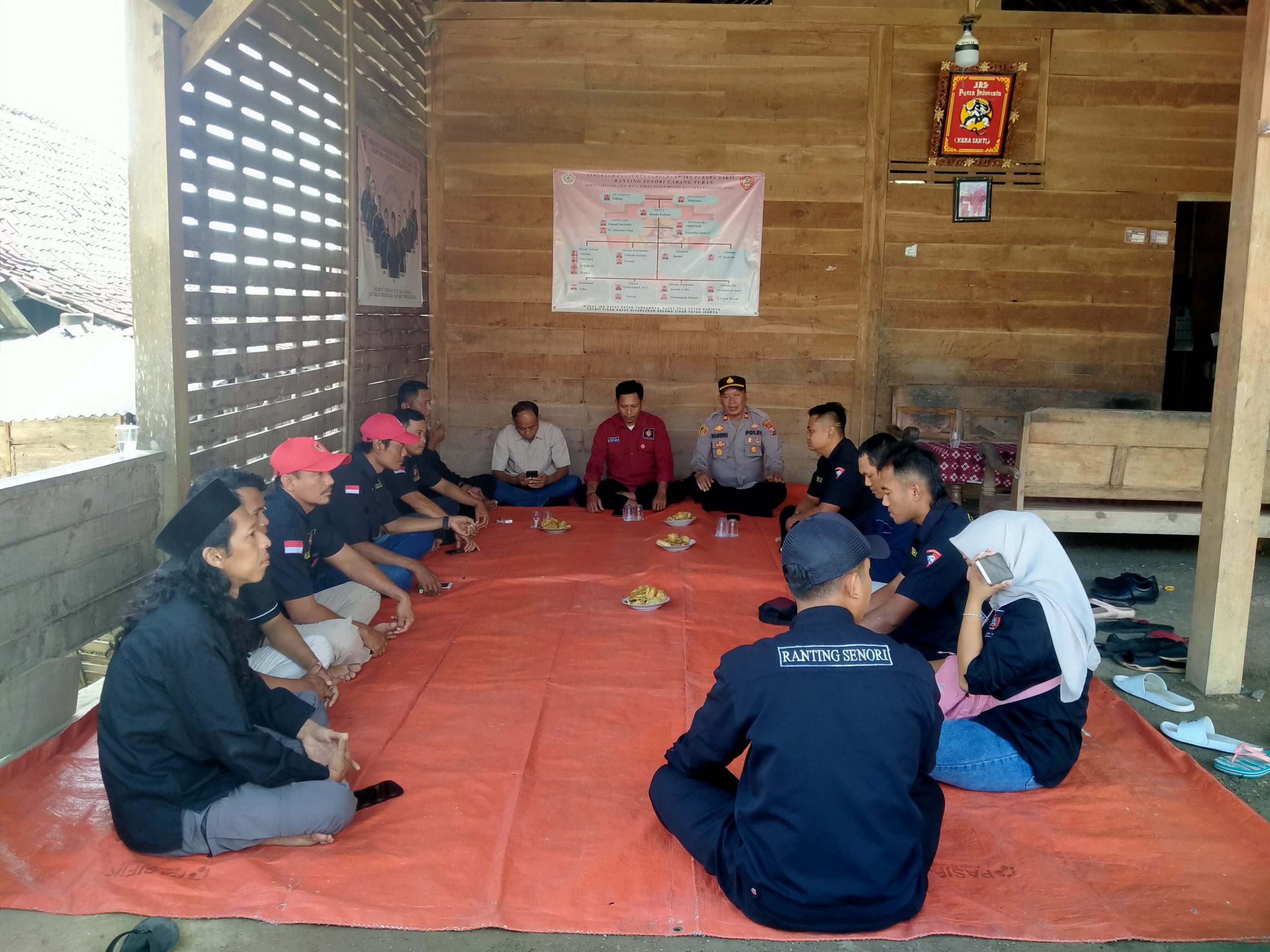 Senori – Sehari menjelang pelaksanaan pengesahan warga baru IKSPI Kera Sakti yang akan diselenggarakan di kota Madiun. Kapolsek Senori Polres Tuban Polda Jatim Iptu Sudjarwo, S.H., yang didampingi oleh Kanit Intelkam Aiptu Mafud Efendi dan Kanit Binmas Aiptu Widodo melaksanakan silaturahmi dengan Pengurus Ranting IKSPI Kecamatan Senori, Rabu (30/7/2025) pagi.