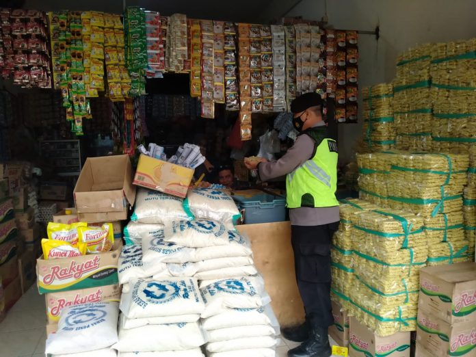 seopini.com-polrestubanpoldajatim Anggota Polsek Rengel Polres Tuban menggelar patroli dan melakukan pemantauan ketersediaan bahan kebutuhan pokok di sejumlah toko di Kecamatan Rengel Kabupaten Tuban. Rabu, (31/3/2021).