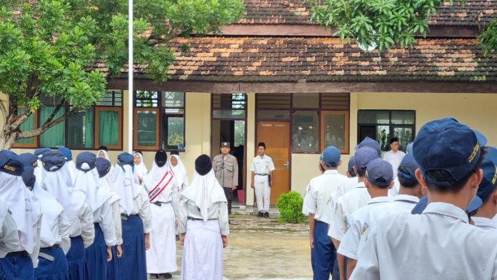 Kanit Binmas Polsek Bancar Polres Tuban Jatim Melaksanakan Giat Sebagai Komandan Upacara di SMP Negeri 2 Bancar.