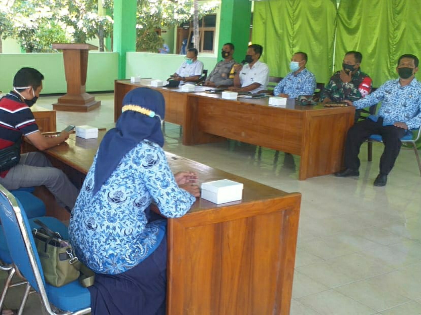 Pelaksanaan Rapat Koordinasi Ujian lowongan perangkat Desa berjalan aman tertib dan lancar, serta mematuhi disiplin menerapkan protokol kesehatan guna cegah penyebaran virus corona. (Humas Kdrn)