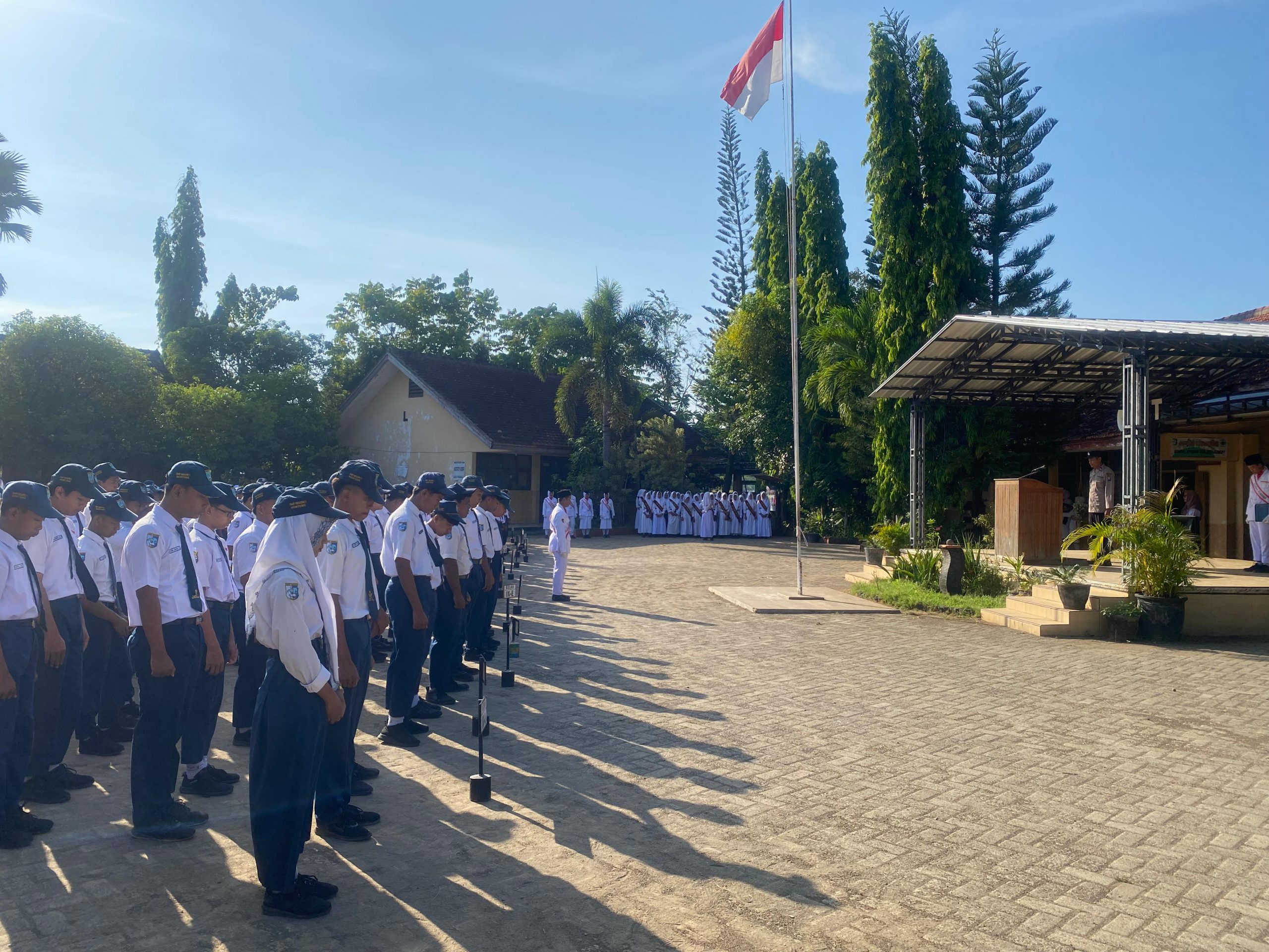 Polsek Montong Polres Tuban – Dalam kegiatan Goes To School di SMPN 1 Montong, Ps. Kanit Binmas  Aipda Kusnul Yakin memberikan pembinaan dan penyuluhan tentang Sosialisasi berlalu lintas dijalan raya dan Ketentuan penggunaan kendaraan bermotor untuk tidak menggunakan Knalpot brong, Hindari Kekerasan di lingkungan Sekolah (Bullying), serta Jauhi obat-obatan terlarang dilingkungan sekolah dalam amanatnya sebagai pembina upacara di SMPN 1 Montong.