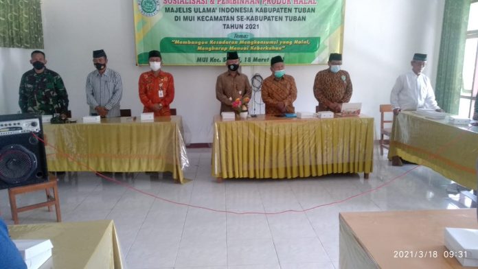 seopini.com-polrestubanpoldajatim Kanit Intelkam Polsek Senori Polres Tuban mewakili Kapolsek Senori Iptu Suganda, S.H., menghadiri kegiatan sosialisasi pembinaan produk halal yang diselenggarakan oleh MUI Cabang Tuban, Kamis (18/3/2021).