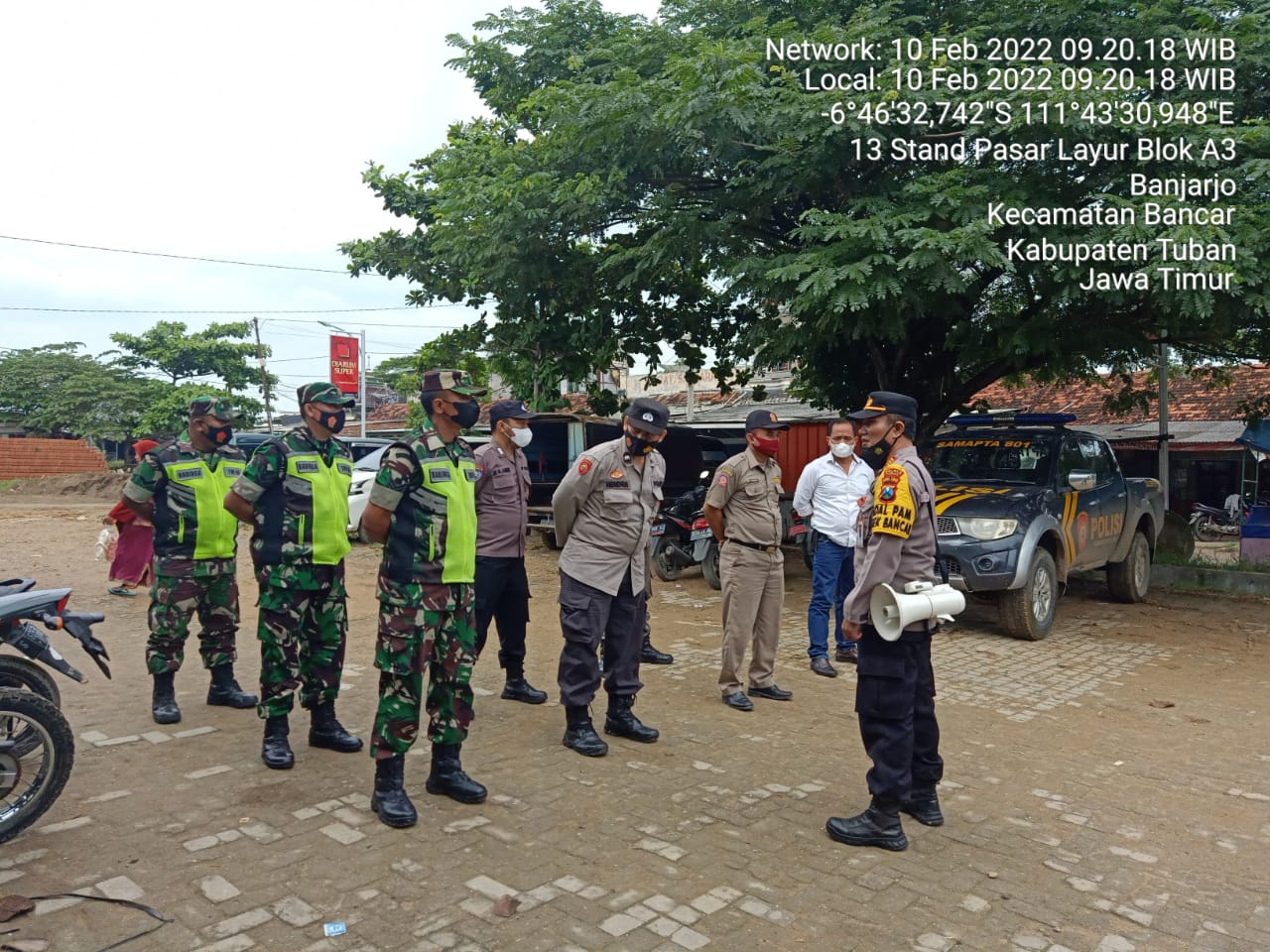 Polsek Bancar Polres Tuban bersama Koramil 0811/12 Bancar berkesinambungan melaksanakan kegiatan Pendisiplinan Protokol Kesehatan  dengan melaksanakan giat Yustisi Prokes Sasaran tempat yang sering digunakan aktifitas kerumunan masyarakat seperti Perbankan, Perkantoran, Pasar Pertokoan, Cangkrukan dan tempat kerumunan lainya Dalam rangka penanggulangan Penyebaran Omnicrom . Senin, 14 Februari 2022.