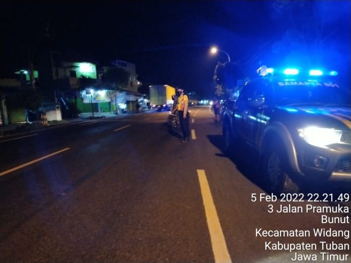 Widang – Polsek Widang melaksanakan patroli malam di wilayah Kecamatan Widang, Sabtu (05/02/2022) malam.