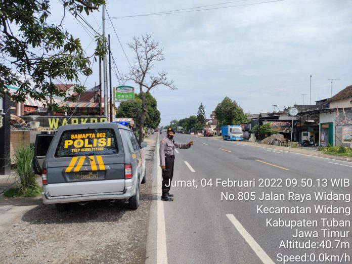 Widang – Mengantisipasi tindak kejahatan jalanan dan mencegah terjadinya laka lantas, Kepolisian Sektor Widang meningkatkan patroli dengan sasaran prioritas jalur Pantura, Jum’at (04/02/2022 ).