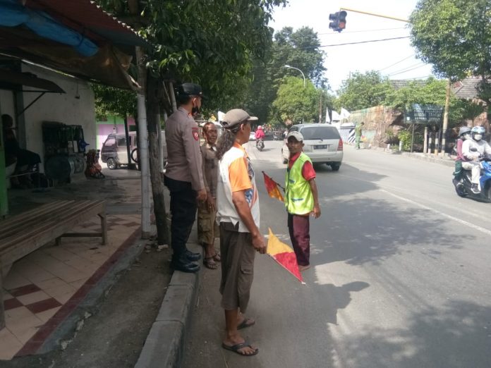 Tak hanya menyampaikan himbauan, Mantan KBO Satreskrim Polres Tuban ini juga terlihat turun langsung mengatur lalu lintas di depan Goa Ngerong.