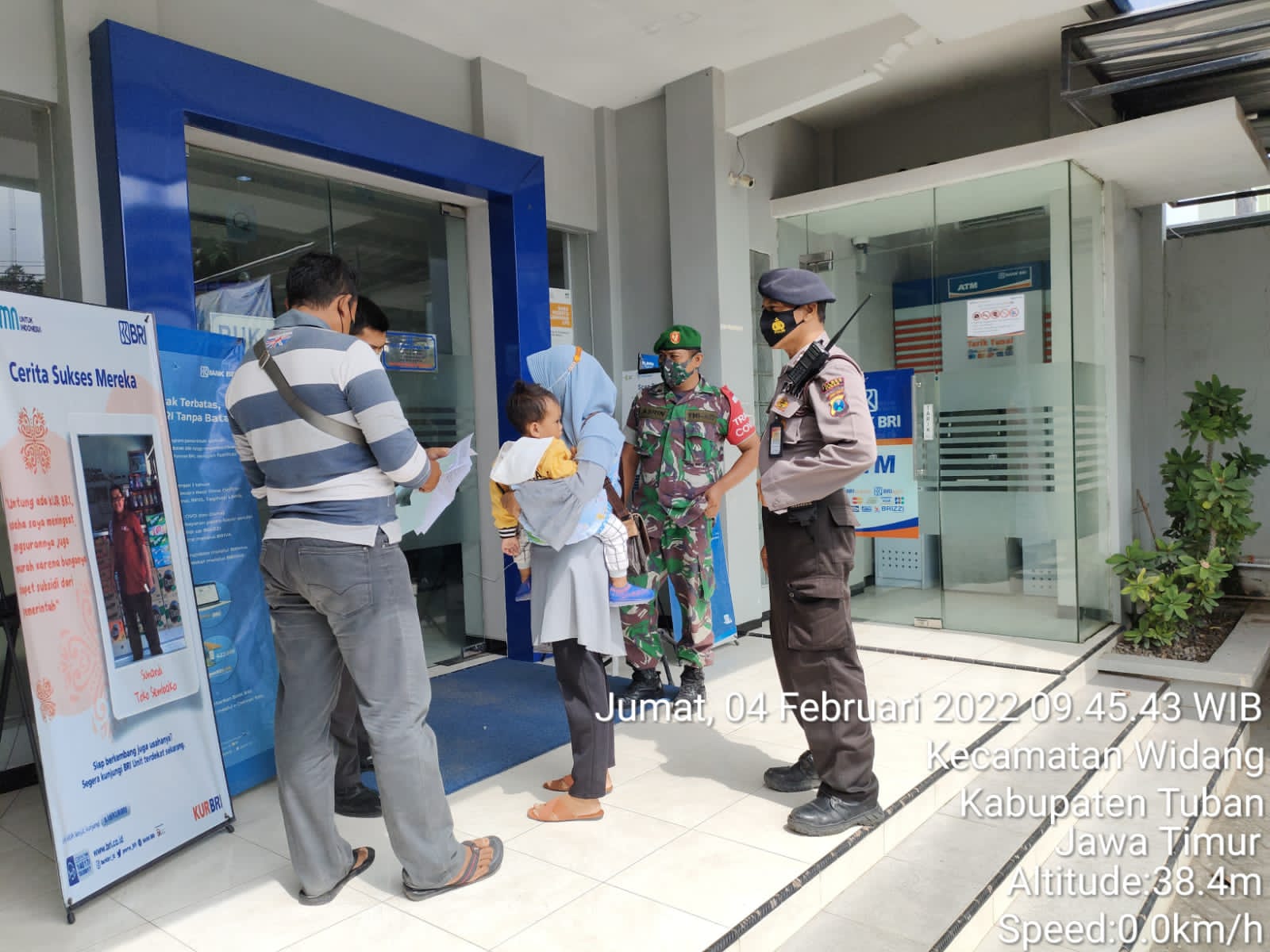 Widang – Anggota Polsek Widang yang melaksanakan tugas jaga dipimpin oleh KSPK melaksanakan patroli di perbankan untuk menyampaikan himbauan Protokol Kesehatan pada masa pandemi Covid-19 dan pesan kamtibmas sebagai upaya Harkamtibmas, Jumat (04/02/2022).