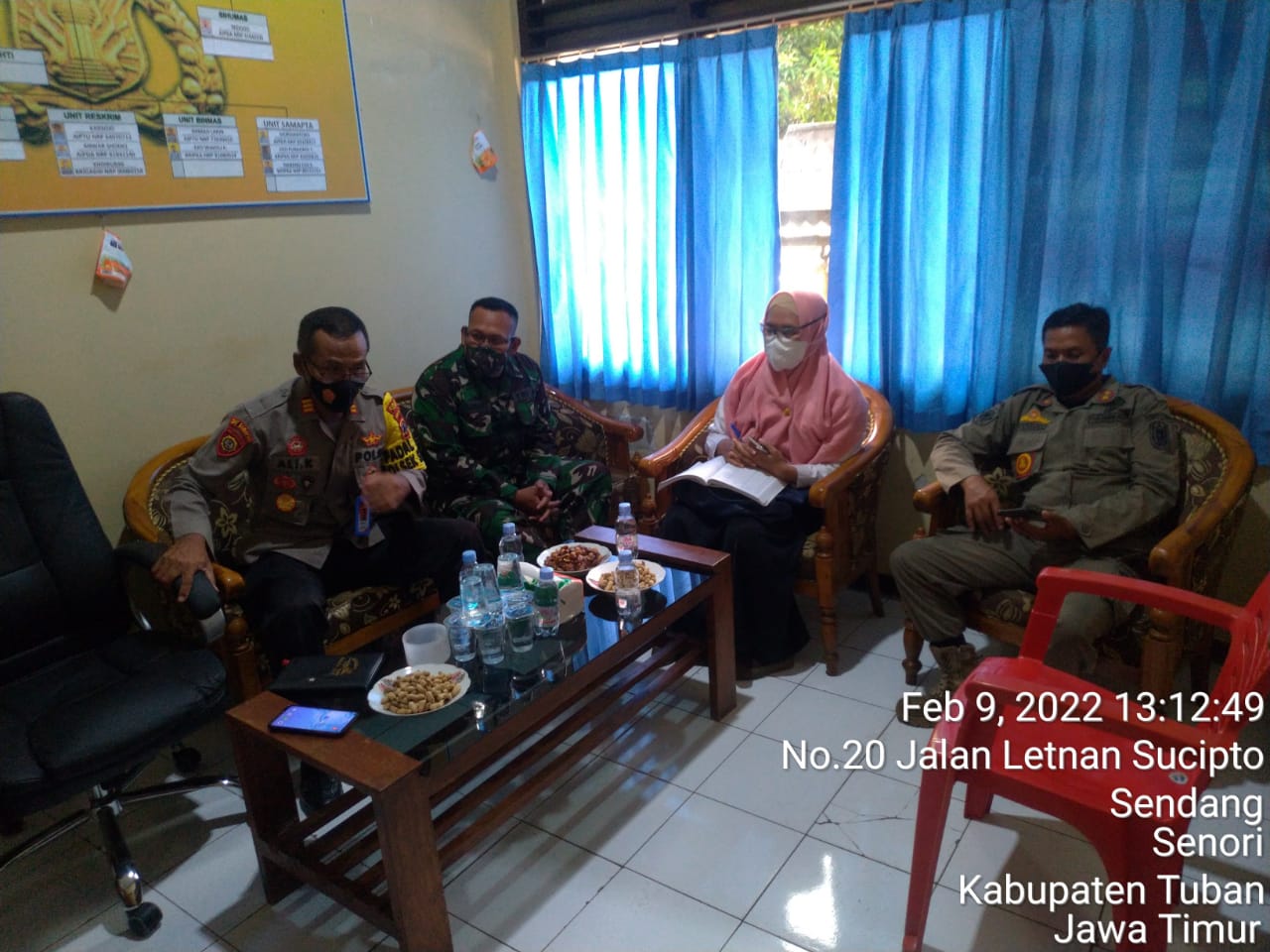 seopini.com – PolresTubanPoldaJatim Senori – Koordinasi dan kerjasama yang baik ditunjukkan oleh tiga pimpinan Forum Koordinasi Pimpinan Kecamatan (Forkopimcam) Senori bersama Kepala Puskesmas Senori. Hal tersebut dapat dilihat sewaktu pimpinan di tingkat Kecamatan ini mengikuti kegiatan zoom meeting di Mapolsek Senori, Rabu (9/2/2022) siang.