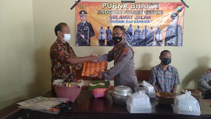 Kepolisian Sektor (Polsek) Senori Polres Tuban menggelar Upacara pelepasan Purna Bhakti Anggota Polsek Senori, Jum’at (2/4/2021).