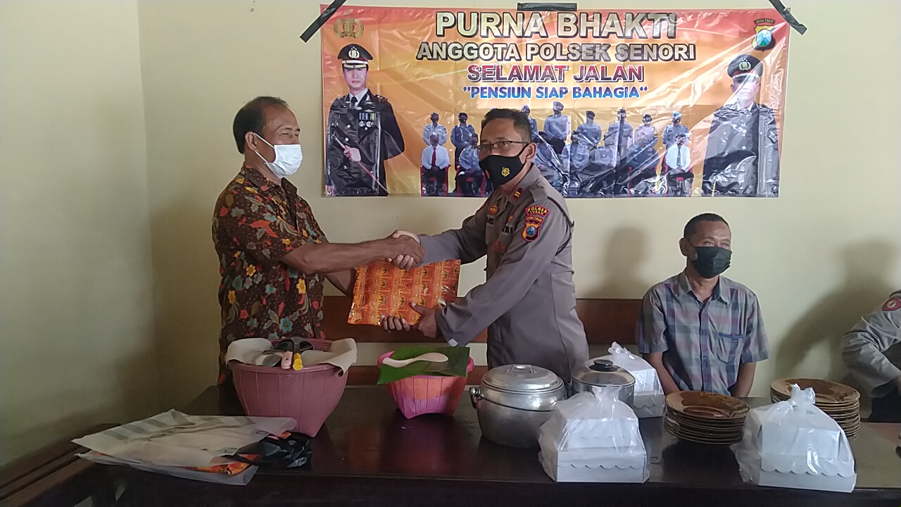 Dua personil yang telah mengakhiri masa pengabdiannya sebagai anggota Polri dan ASN Polsek Senori adalah Aiptu Sugeng Waluyo yang sebelumnya menjabat sebagai Ps, KaSPKT Polsek Senori dan Penata Sucipto, ASN Polsek Senori.