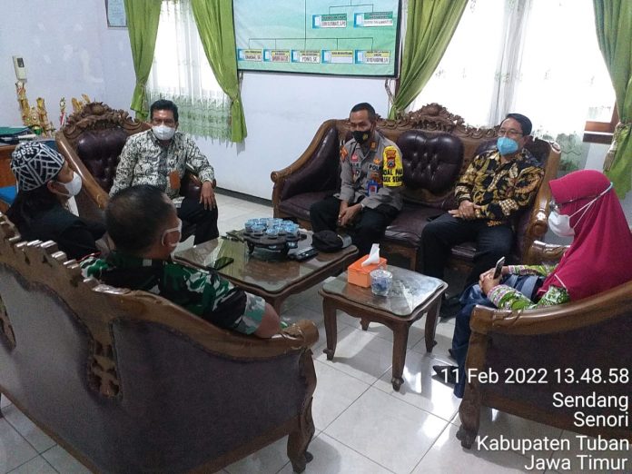 Senori – Gugus tugas penanganan Covid-19 tingkat Kecamatan Senori melaksanakan rapat koordinasi (Rakor) dengan pengurus takmir masjid Ar Raudhoh Desa Jatisari Kec, Senori, Kamis (11/2/2022).