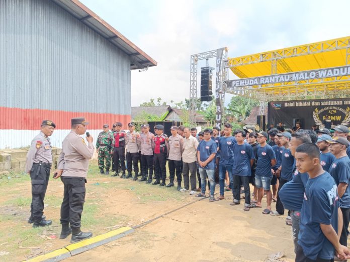 Senori – Kapolsek Senori Polres Tuban Polda Jatim Iptu Sudjarwo, S.H., memimpin pengamanan kegiatan pentas musik dangdut dalam rangka halal bihalal yang diselenggarakan oleh komunitas pemuda rantau Malo Wadung Desa Sidoharjo Kecamatan Senori, Selasa (24/3/2026) siang.