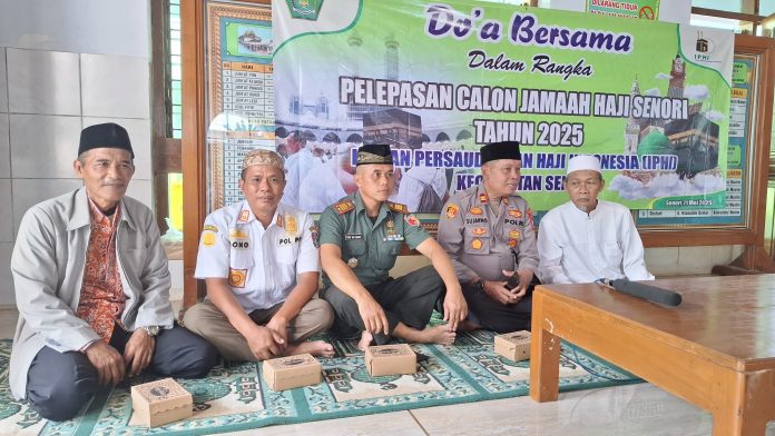 Senori – Kapolsek Senori Polres Tuban Polda Jatim Iptu Sudjarwo, S.H., bersama Forkopimcam Senori menghadiri acara doa bersama dalam rangka pelepasan Calon Jamaah Haji (CJH) asal Kecamatan Senori tahun 1446 H / 2025 M yang akan berangkat menunaikan ibadah haji di Makkah, Rabu (21/5/2025).