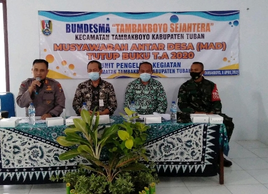 seopini.com – PolresTubanJatim Musyawarah Antar Desa ( MAD ) Tutup Buku Tahun 2020 dan Perencanaan Tahun 2021 telah di laksanakan, untuk itu Kapolsek Tambakboyo Polres Tuban AKP Eko Sumartono, S.I.P, M.I.P . hadir sebagi undangan di acara tersebut yang di selenggarakan di Gedung UPK Kec. Tambakboyo Kab.Tuban , Kamis (8/4/2021) siang