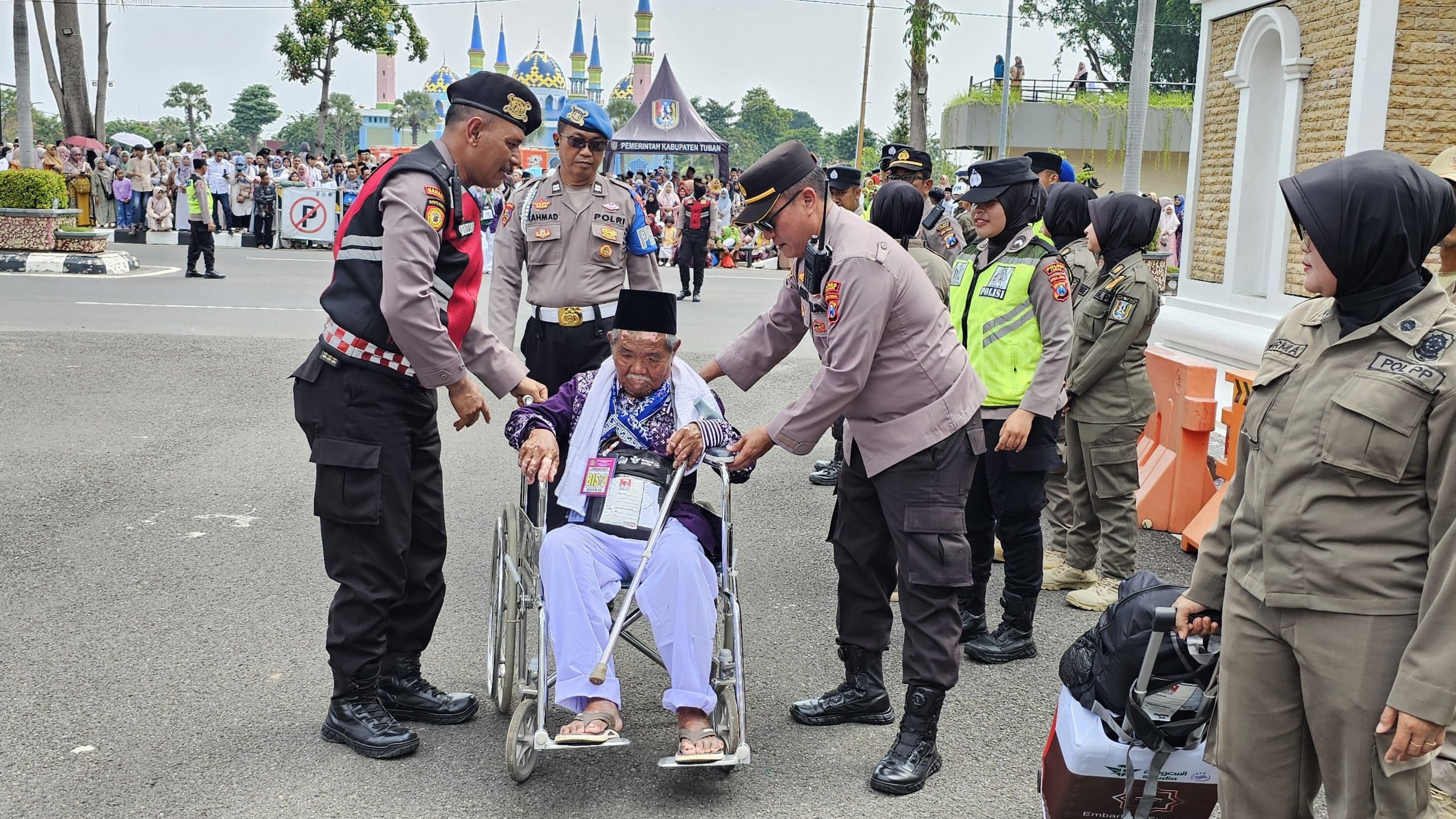 Menarik perhatian publik, Kapolsek Tuban menunjukkan sikap humanis dan empati tinggi dengan membantu langsung seorang calon jamaah haji lansia yang menggunakan kursi roda. Dengan sigap, beliau mendampingi dan mendorong kursi roda jamaah tersebut menuju lokasi keberangkatan. Tindakan ini menjadi simbol kepedulian serta pelayanan prima yang menjadi komitmen Polri dalam melayani masyarakat.