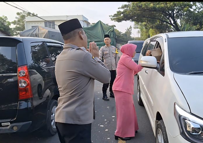Tuban – Kapolsek Widang AKP Narko, S.H bersama Bhayangkari Ranting Widang Cabang Tuban menggelar kegiatan berbagi takjil kepada masyarakat yang melintas di depan Kantor Polsek Widang, Sabtu (14/3/2026) sore.