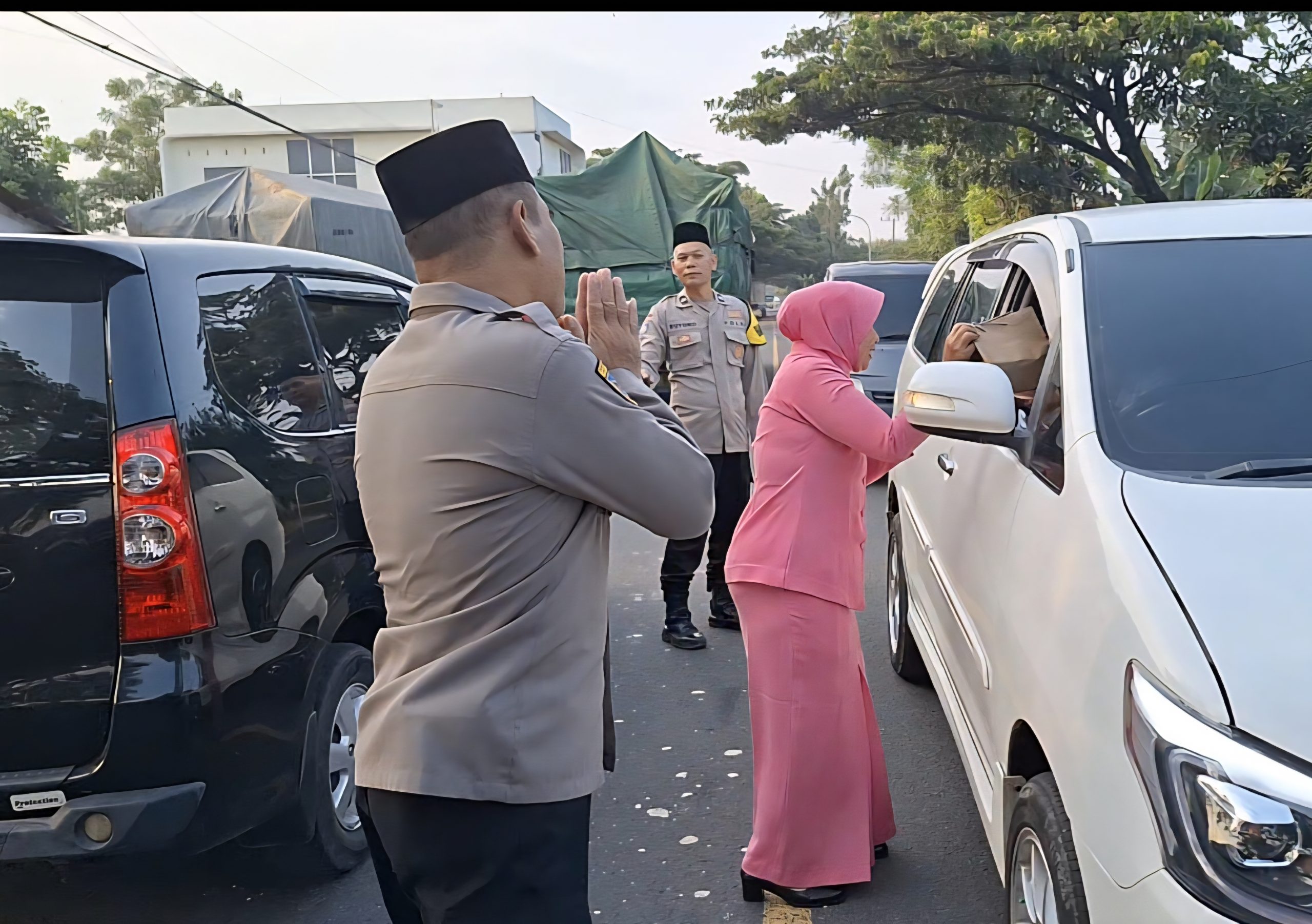 “Kami bersama Bhayangkari membagikan paket takjil. Sedikit takjil, semoga membawa kebahagiaan bagi yang sedang dalam perjalanan menuju waktu berbuka, ” ujar Kapolsek.
