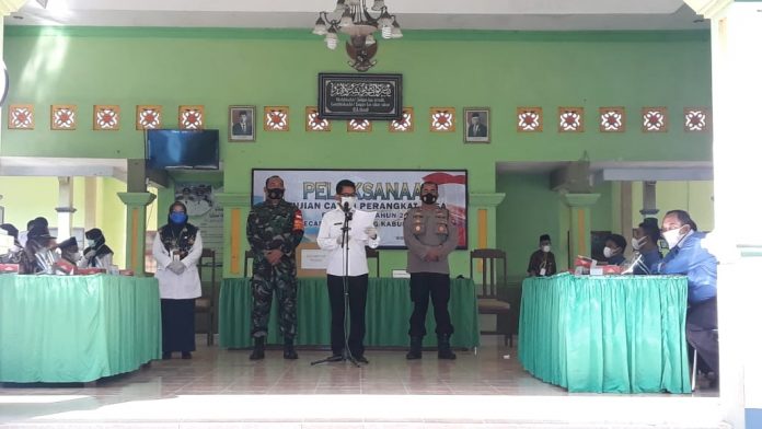 ” Ujian tersebut untuk mengisi perangkat desa yang kosong, diantaranya dari Desa Ngadirejo, Tegalsari, Tegalrejo, Compreng, Minohorejo. Selesai acara pembukaan oleh Forkopimka, ujian dilaksanakan tepat pukul 09.15 Wib.