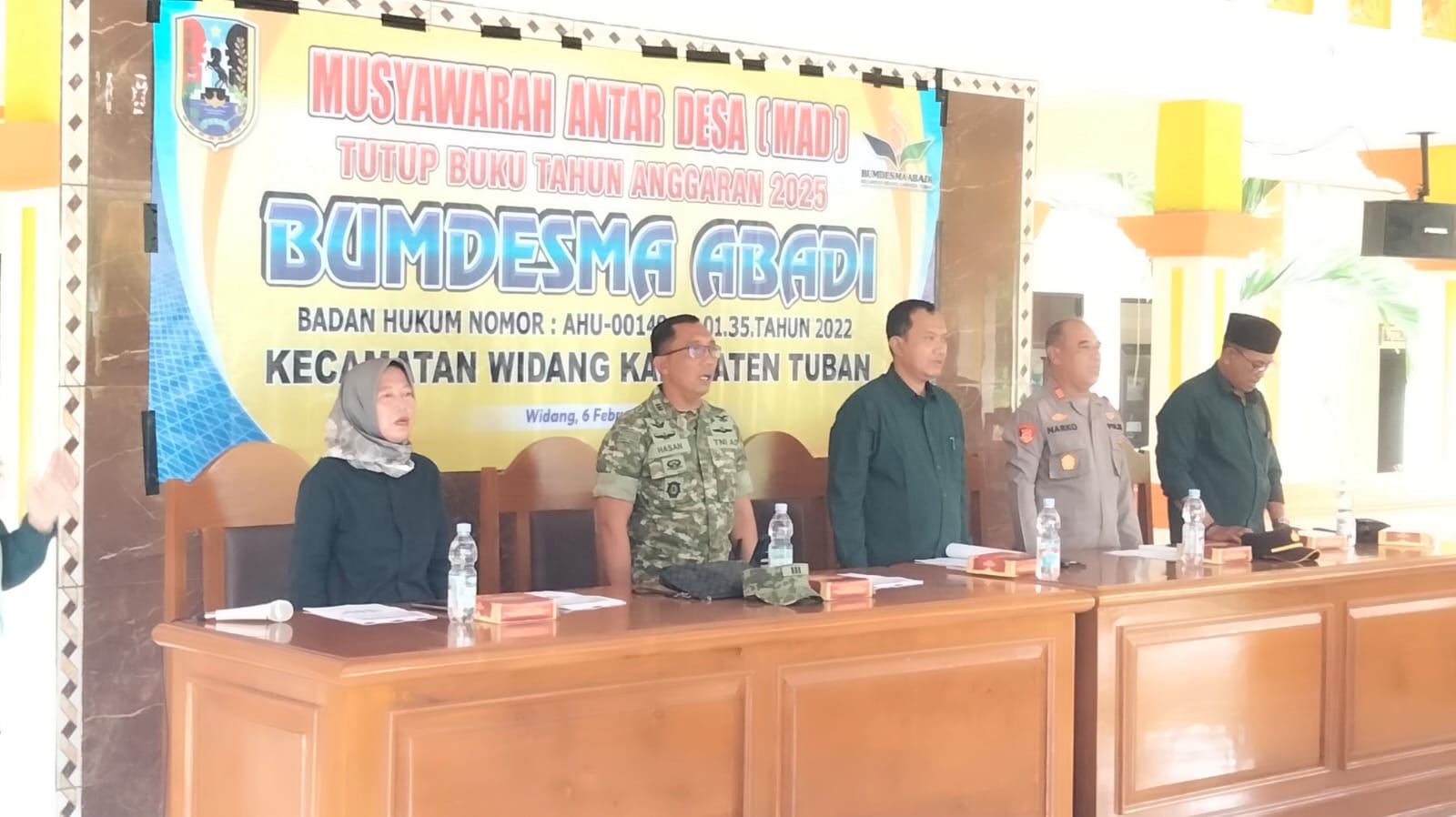 Tuban – Kapolsek Widang AKP Narko S.H menghadiri Musyawarah Antar Desa (MAD) terkait Badan Usaha Milik Desa Bersama (BUMDesma) guna memastikan transparansi dan menjaga situasi kamtibmas yang kondusif, Jumat (6/2/2026) pagi.
