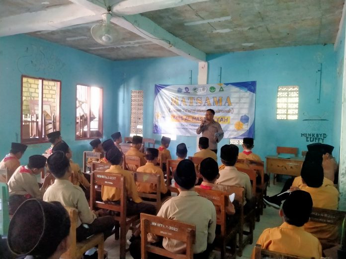 Kapolres Tuban AKPB William Cornelis Tanasale S.I.K., melalui Kapolsek Senori Iptu Sudjarwo, S.H., menjelaskan berdasarkan surat permohonan permintaan bantuan menjadi narasumber dari MTs Al Hasaniyyah Desa Sendang, maka kita perintahkan Kanit Binmas bersama Bhabinkamtibmas untuk memberikan materi pada kegiatan Matsama.