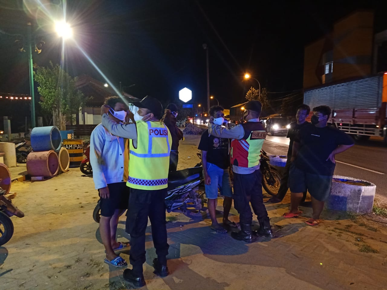 Pada kesempatan malam itu anggota Polsek Bancar memberikan himbauan protokol kesehatan serta berikan masker Kepada warga yang berada di tepi jalan dusun Binangun Ds Bulu Meduro untuk selalu menjalankan Protokol Kesehatan 5M guna mengantisipasi Penyebaran Covid-19.