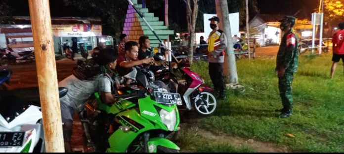 Kali ini yang menjadi sasaran adalah lapangan bola voli di Desa Wanglu Kulon Kec, Senori. Dilokasi  tersebut didapati sekelompok pemuda yang sedang berkerumun tanpa memperhatikan jarak dan Semua tidak menggunakan masker, Senin (31/5/2021) malam.