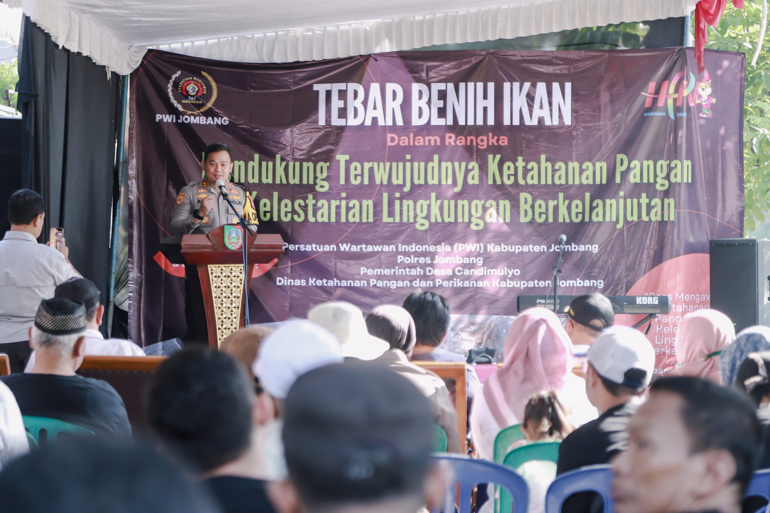 JOMBANG – Dalam rangka mendukung ketahanan pangan dan kelestarian lingkungan, Polres Jombang Polda Jatim berkolaborasi dengan Persatuan Wartawan Indonesia (PWI) Kabupaten Jombang menggelar kegiatan tebar benih ikan di Sungai Jombang Wetan, Desa Candimulyo, Rabu pagi (7/5/2025).