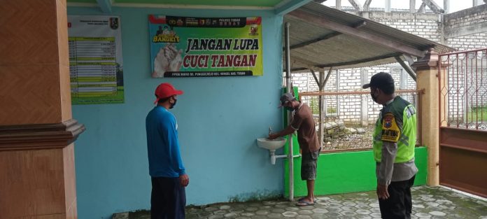 Bhabinkamtibmas Desa Punggulrejo Polsek Rengel Polres Tuban Aipda Andrias Fajar melaksanakan kunjungan ke Posko PPKM Mikro yang berada di Balai Desa Punggulrejo Kecamatan Rengel Kabupaten Tuban. Sabtu, (20/03/2021).