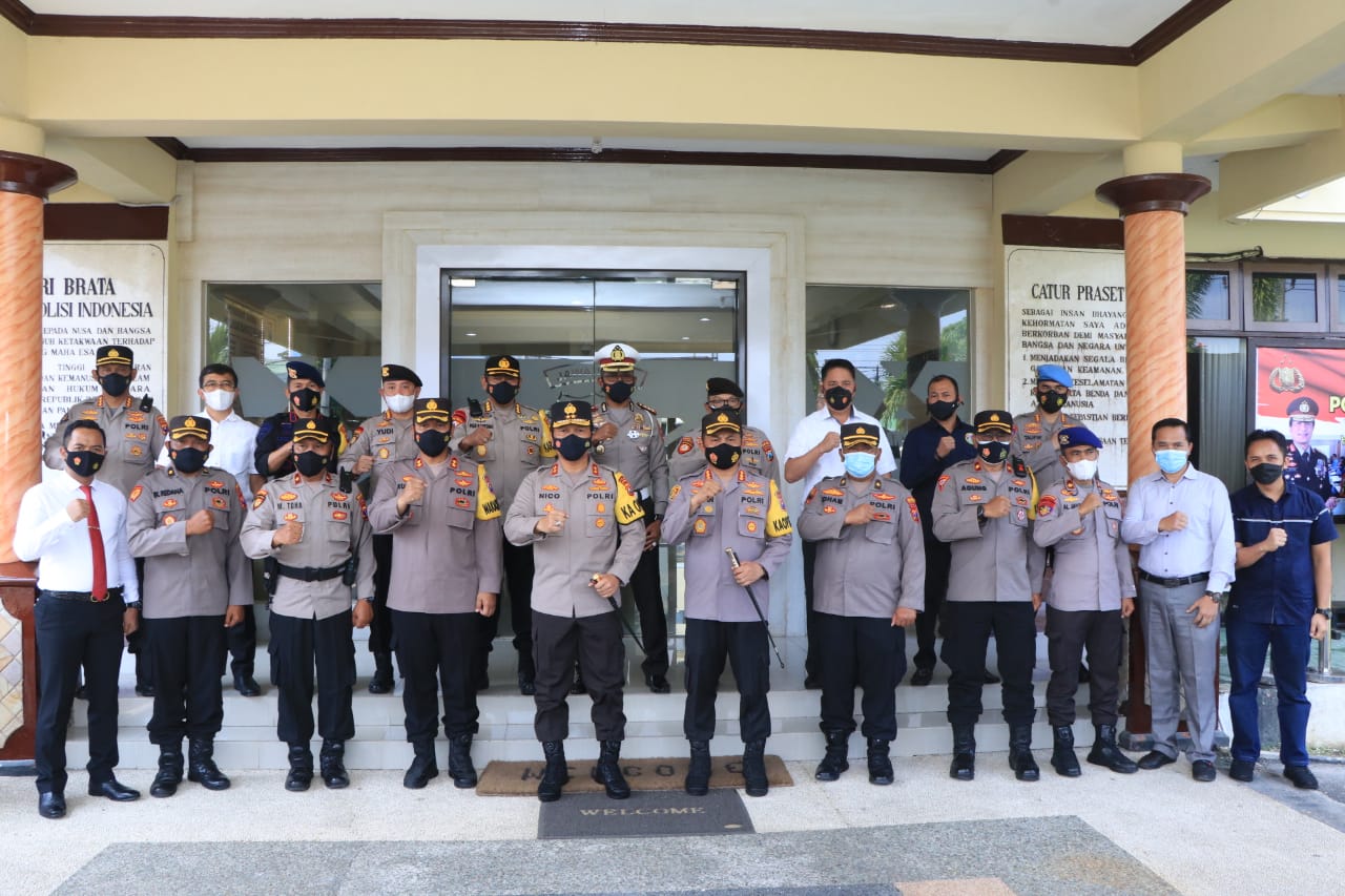 Kapolda Jawa Timur Irjen Pol Nico Afinta, bersama Pejabat Utama Polda Jatim, dan Kabid Humas Polda Jatim Kombes Pol Gatot Repli Handoko, Sabtu (10/4/2021) melakukan kordinasi dengan jajaran di Polresta Banyuwangi, guna menyambut lebaran Idul Fitri terkait larangan mudik dari Pemerintah.