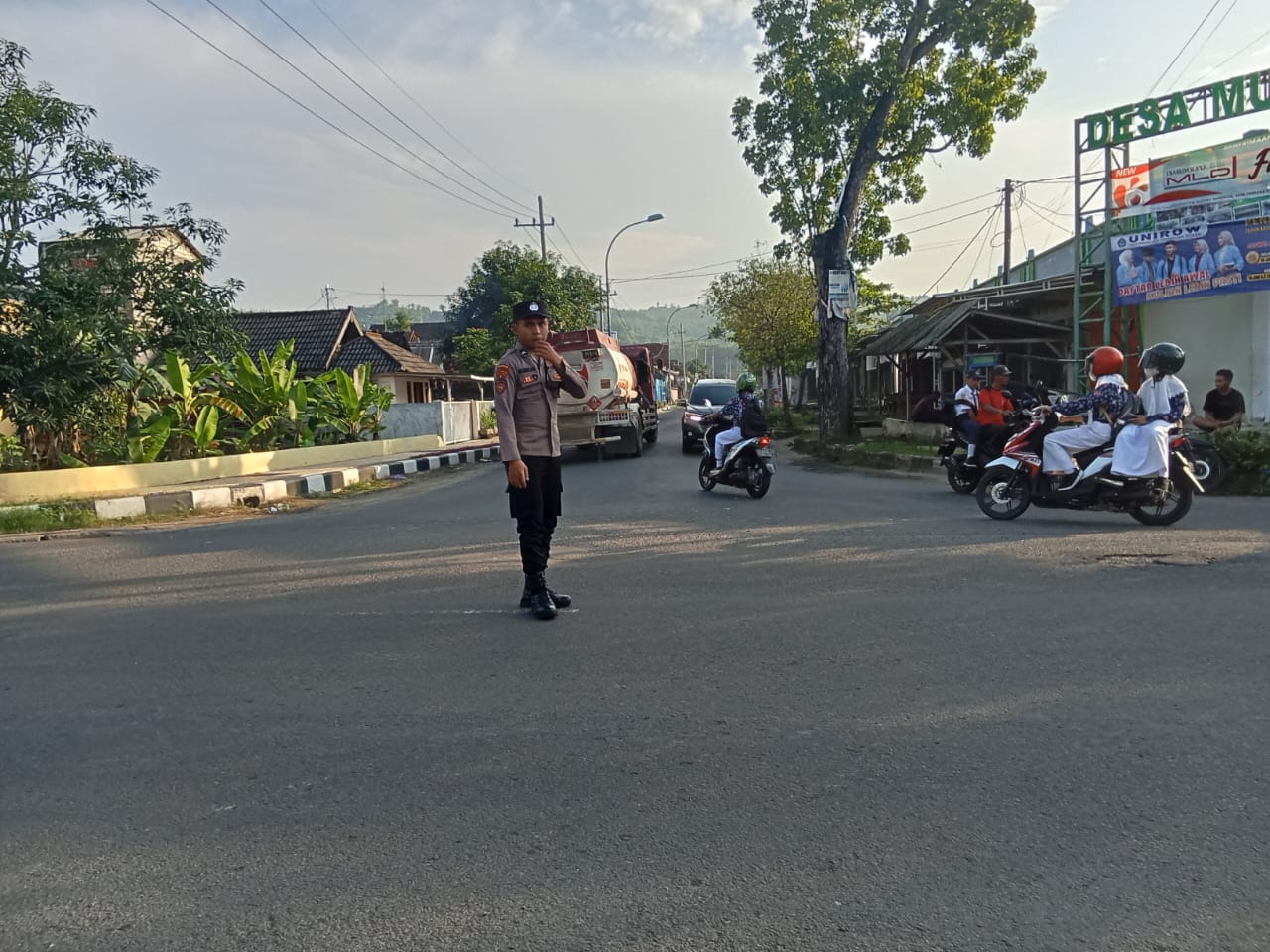 Seperti yang dilakukan personil Polsek Singgahan Polres Tuban melakukan pengaturan lalu lintas dipagi hari dengan membantu menyeberangkan warga di simpang empat anjlok turut Desa Mulyoagung Kecamatan Singgahan Kabupaten Tuban. Rabu (06/08/2025)