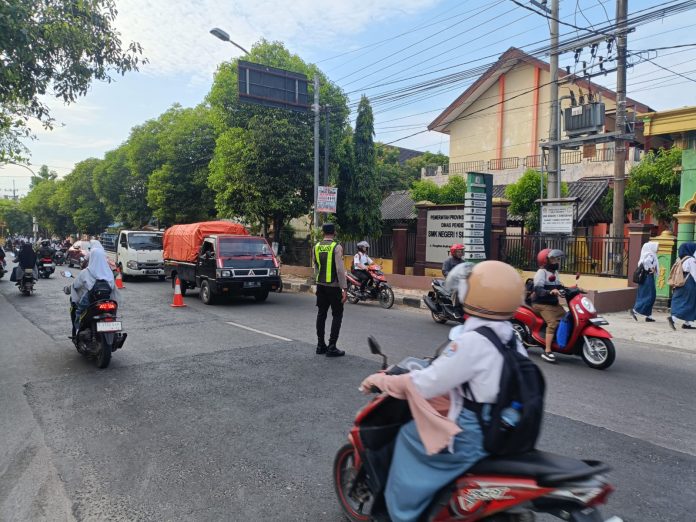 Guna mencegah terjadinya kemacetan maupun laka lantas, Kapolres Tuban AKBP William Cornelis Tanasale S.I.K. mengelar anggotanya dengan melakukan pengaturan lalu lintas dipagi hari.