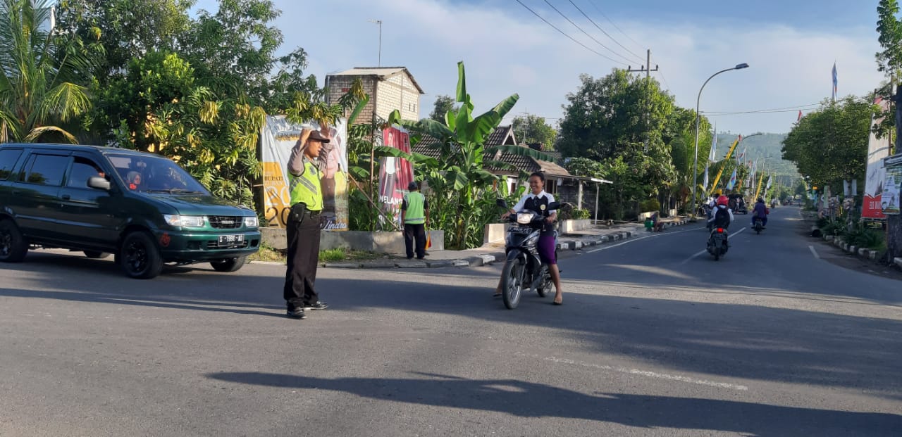 Seperti yang dilakukan personil Polsek Singgahan Polres Tuban melakukan pengaturan lalu lintas dipagi hari dengan membantu menyeberangkan warga di simpang empat anjlok turut Desa Mulyoagung Kecamatan Singgahan Kabupaten Tuban. Selasa (4/1/2020)