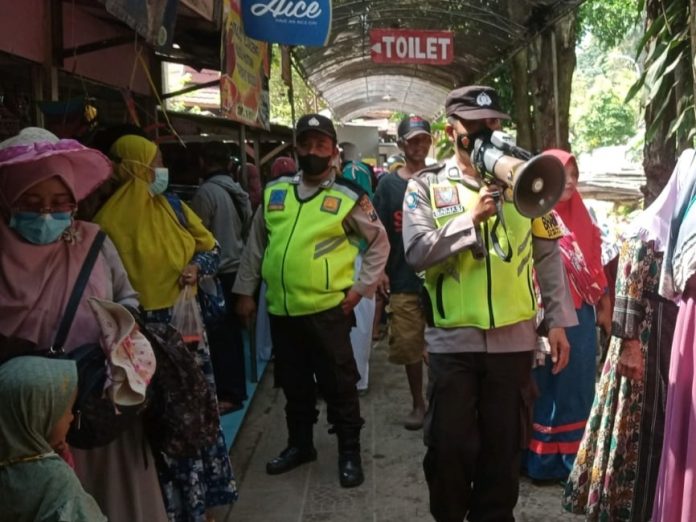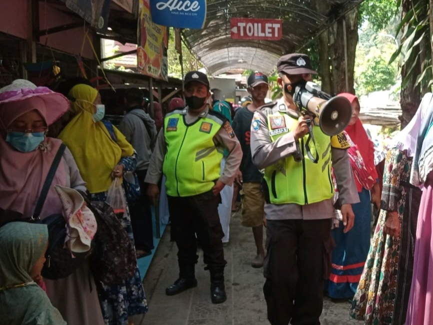 Patroli digelar dalam rangka menciptakan situasi yang aman pada momentum Hari Libur Tahun Baru Imlek. Berbekal pengeras suara, petugas mengimbau para pengunjung obyek wisata untuk mematuhi protokol kesehatan selama berada di Goa Ngerong.
