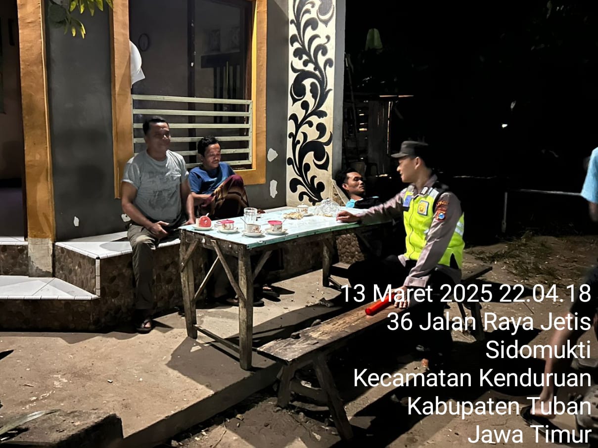 Seperti yang dilakukan Kanit Binmas BRIPKA Eko Hadi Saputro bersama Bhabinkamtibmas melaksanakan patroli sambang poskamling di Dusun Karang Anyar, Desa Sidomukti, Kecamatan Kenduruan, Kabupaten Tuban, Kamis (13/03/2025) malam.