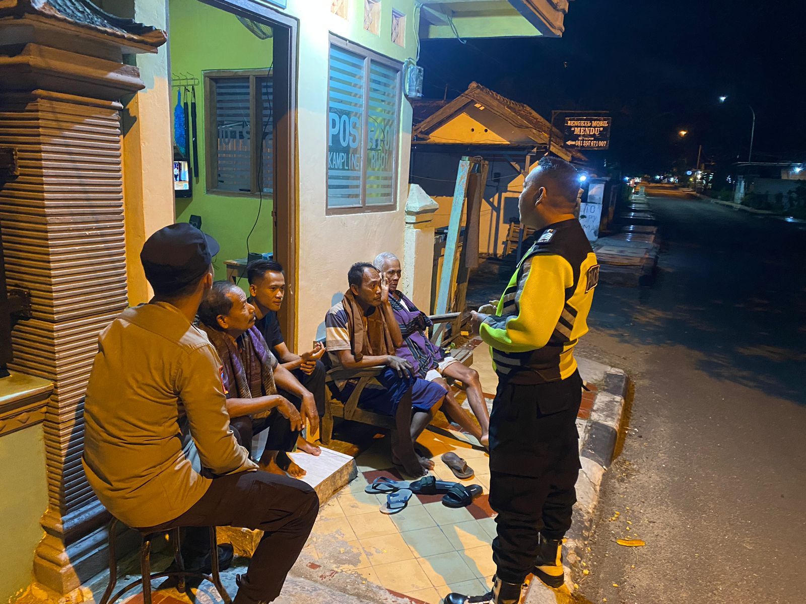 Petugas piket Polsek Kenduruan, AIPTU Seger bersama BRIPKA Sumindar menyambangi kegiatan ronda malam warga di Pos Satkamling RT 01 RW 01 Desa Sidomukti. Dalam kesempatan tersebut, keduanya menyempatkan diri untuk berdialog dengan warga, menyerap aspirasi, sekaligus memberikan motivasi terkait pentingnya menjaga keamanan lingkungan.