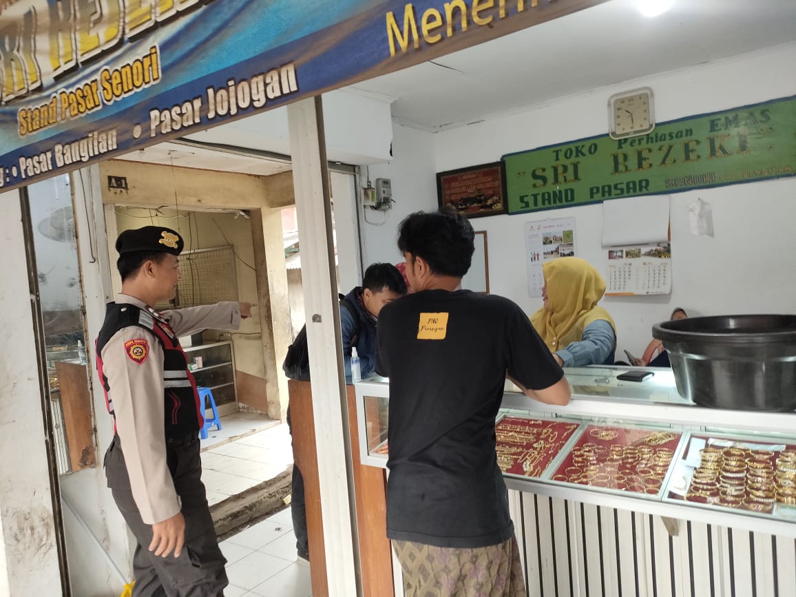 Senori – Ada empat (4) toko emas yang berada didalam area pasar tradisional Desa Jatisari Kec, Senori. Lokasi 4 toko Emas tersebut menyebar di beberapa sudut pasar. Oleh karenanya Unit Samapta Polsek Senori Polres Tuban Polda Jatim menjadikan toko emas itu sebagai target sasaran patroli Kepolisian.