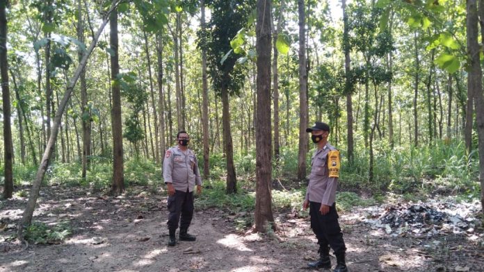 seopini.com-polrestubanpoldajatim Guna mengantisipasi terjadinya pencurian pohon jati dikawasan hutan di wilayah hukum Polsek Jatirogo Polres Tuban, Anggota Polsek Jatirogo melaksanakan patroli di kawasan hutan RPH Sadang BKPH Sekaran KPH Jatirogo Desa Ngepon Kecamatan Jatirogo Kabupaten Tuban. Minggu, (21/3/2021).