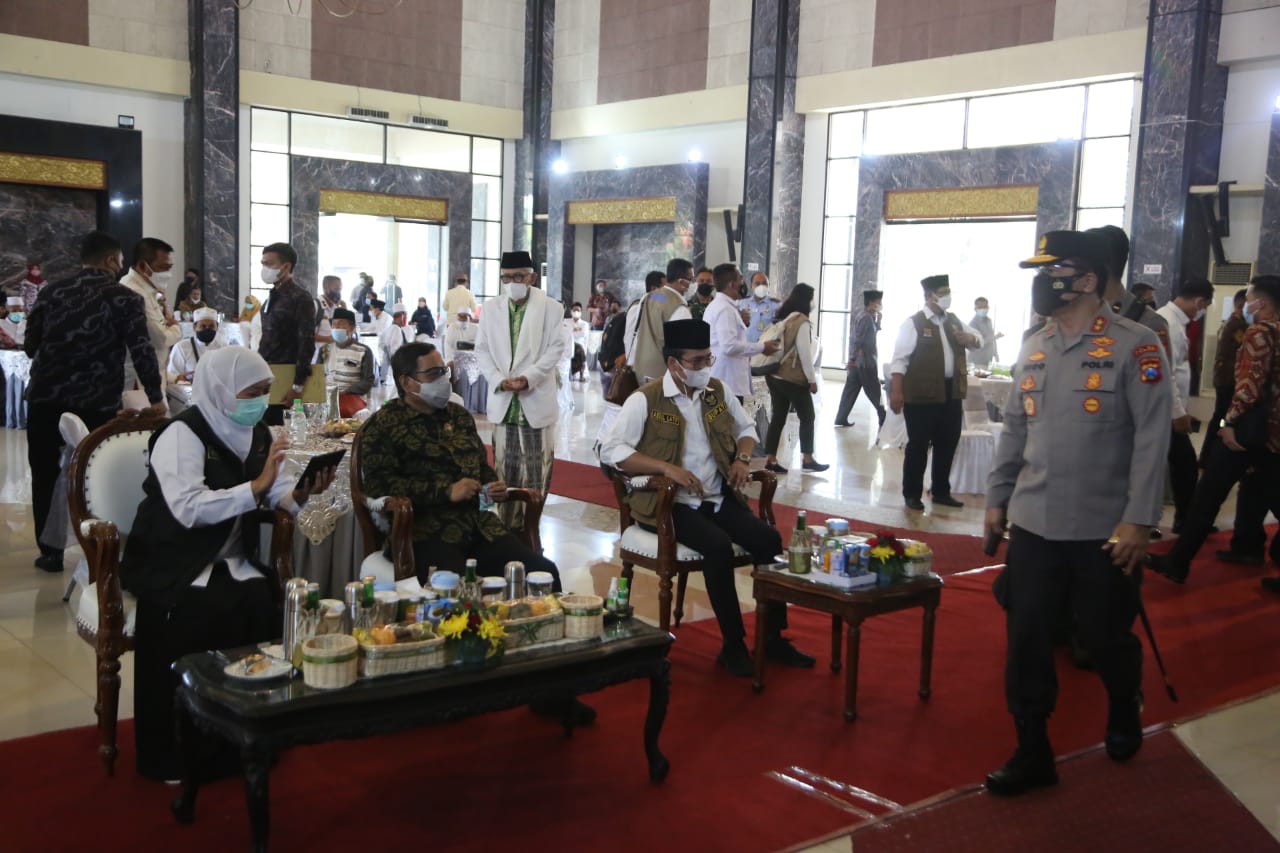 seopini.com – SURABAYA,- Forkopimda Jawa Timur, Gubernur Khofifah Indar Parawansa, Pangdam V Brawijaya Pangdam V Brawijaya Mayjen TNI Suharyanto, Kapolda Jatim Irjen Pol Nico Afinta, Selasa (15/6/2021) siang, mendampingi Prof. Dr. Mohammad Mahfud, Menteri Koordinator Politik Hukum dan Keamanan (Menkopolhukam) RI. Melaksanakan dialog bersama Forkopimda, tokoh agama dan tokoh masyarakat di Gedung Rato Ebuh, Kabupaten Bangkalan, Madura. Terkait antisipasi dan penanganan Covid-19.