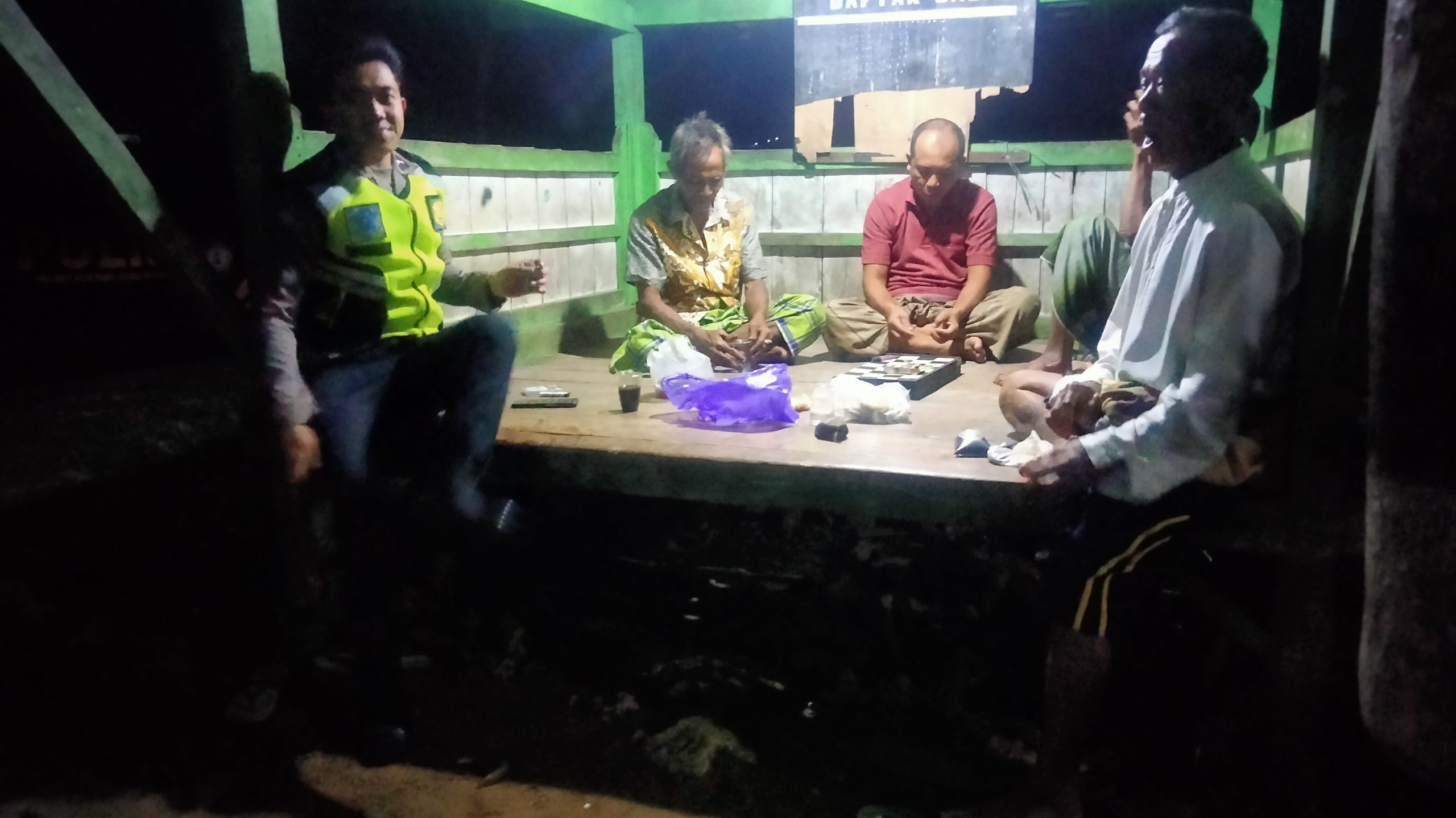 Sembari berbincang dengan warga, bhabinkamtibmas dusun jurangan desa Pucangan Bripda Moch dio mengingatkan warga yang sedang berjaga untuk selalu waspada terhadap segala bentuk tindak kejahatan.
