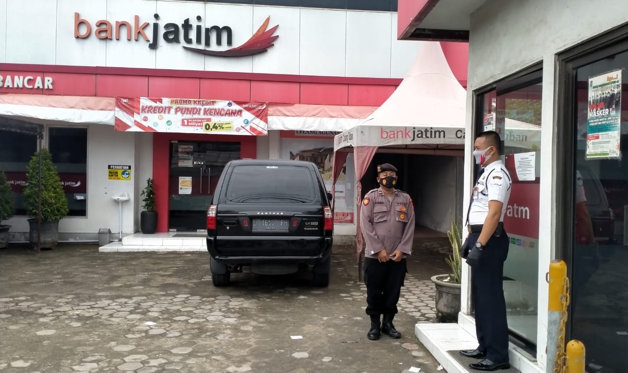 Pada kesempatan siang itu kondisi sepi nasabah anggota Polsek Bancar melakukan patroli Perbankan ( Bank BRI, Bank BNI, Bank Jatim ) diwilayah kecamatan Bancar serta mengajak petugas scurity Bank untuk mendampingi melakukan pengecekan sekitar Bank guna mengantisipasi bobol ATM maupun kriminalitas lainya.