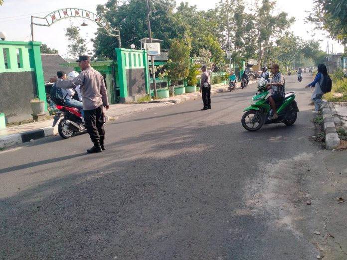 Pastikan arus lalin lancar, Polisi Polsek Kenduruan Polres Tuban disimpul-simpul jalan