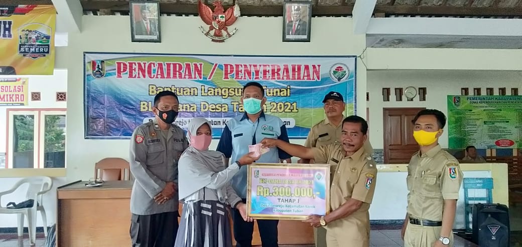 seopini.com-polrestubanpoldajatim Demi kelancaran pembagian Bantuan Langsung Tunai Dana Desa (BLT-DD) terhadap warga masyarakat Desa Jarorejo Kecamatan Kerek, Bhabinkamtibmas bersama Babinsa serta Kades dan Perangkat ikut melaksanakan pemantauan terhadap pembagian Bantuan Pemerintahan yang dilaksanakan di balai Desa setempat.